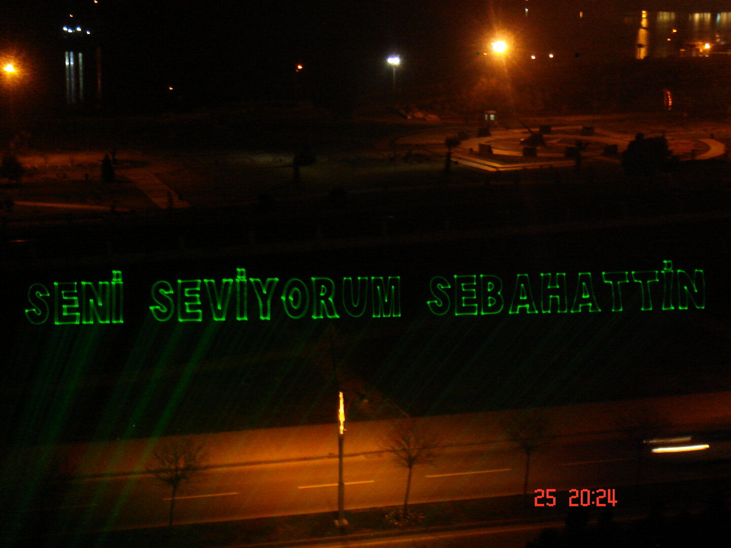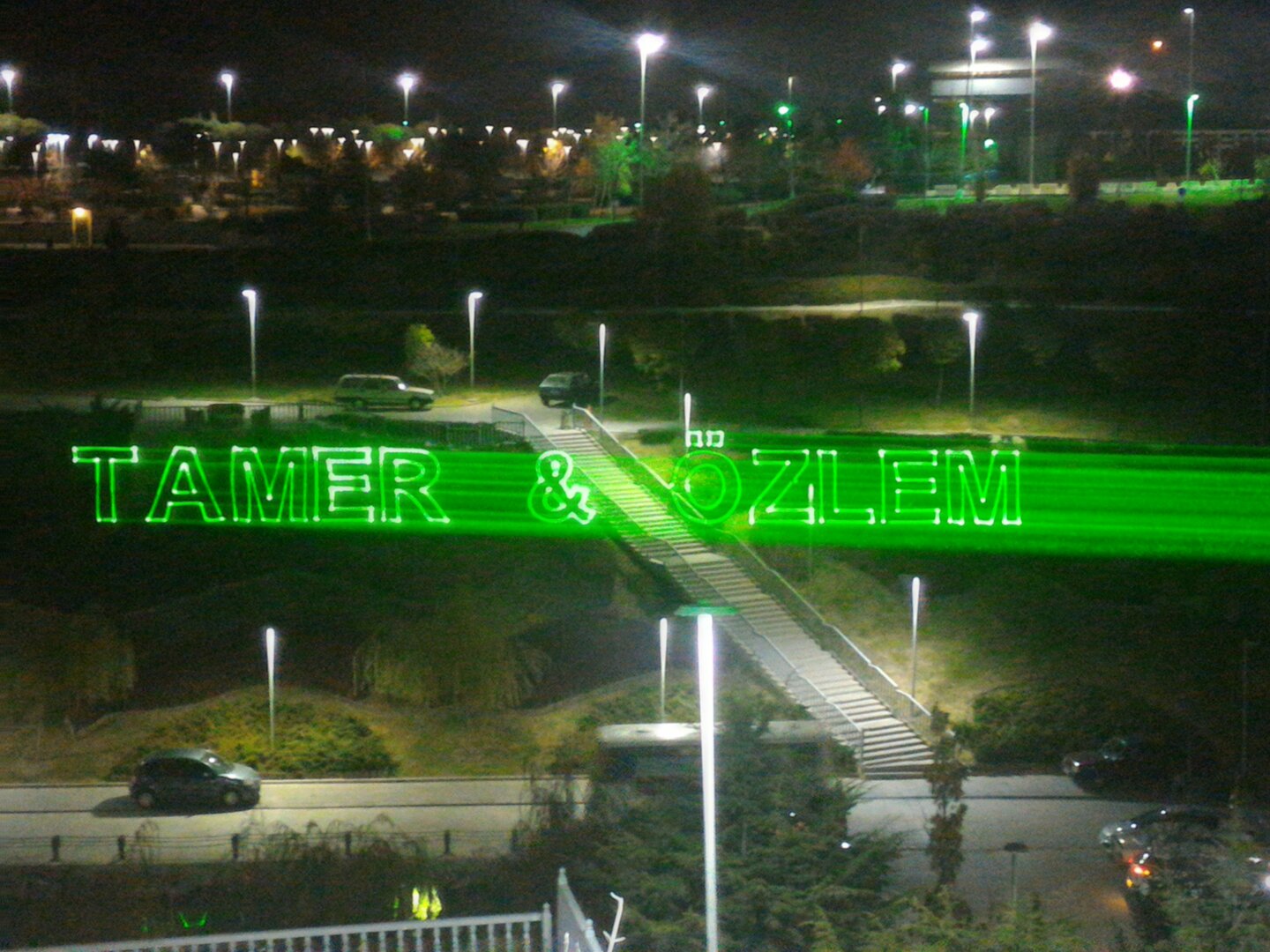 Örneğin eşinizin haberi olmadan özel bir yemek yerken, eşinizin baktığı noktada Laser bir anda devreye girip seni seviyorum, Benimle evlenir misin yazabilir, kalpler uçuşabilir vs. gibi muhteşem bir görsel show ile eşinizi şaşırtabilirsiniz.Hayatınızın bu en önemli kararını özel bir organizasyon ile yapmanız dileklerimizle.